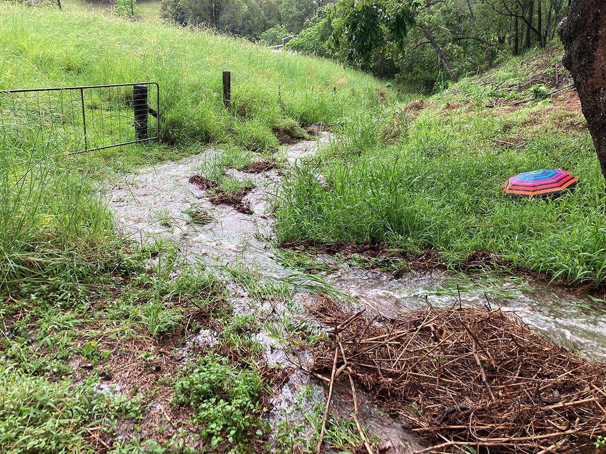 Since we took occupancy of our Mount Nathan property in August 2022 our daily rainfall records depict widely fluctuating conditions. There have been a number of high rainfall periods in this time with the most intense being in March 2025 with Cyclone Alfred with 710mm recorded over three days, and a total of 980mm for the month. There have been a number of months in the past three years where the monthly rainfall has been above the long term monthly average rainfall based on the official Bureau of Meteorology records from its Clearview Alert station 40846 located approximately 1km from our property. This information has been invaluable in planning and implementing land restoration, soil erosion and runoff control and channel stability works on our property.