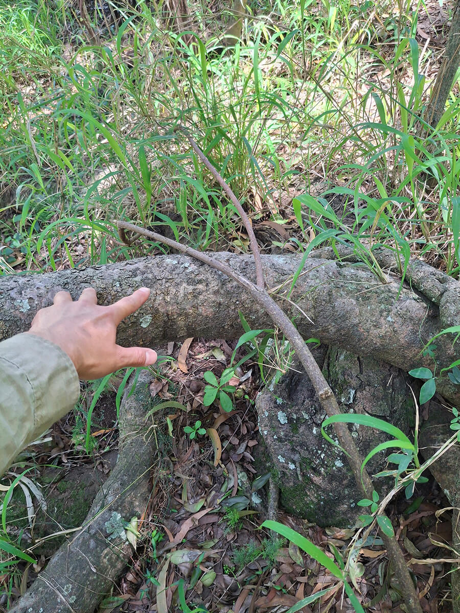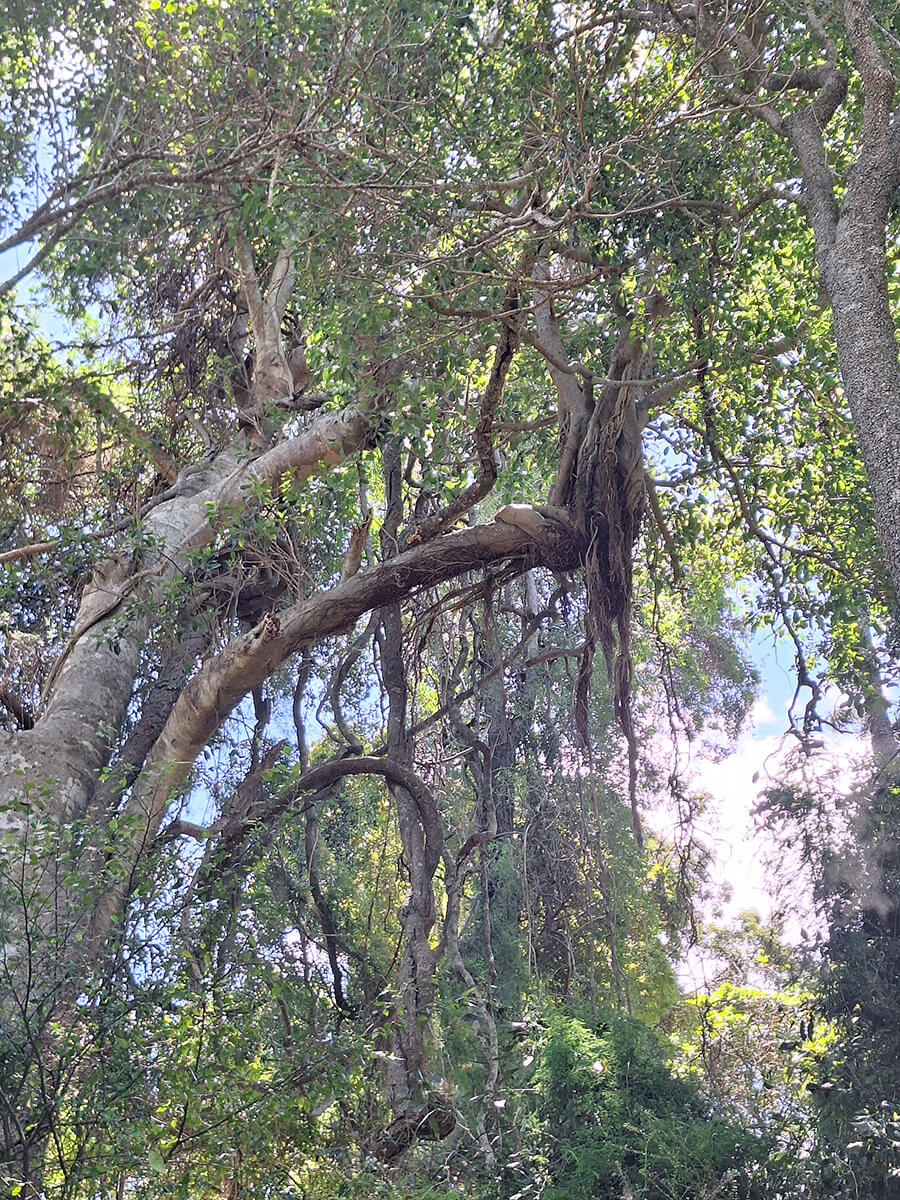 The temperature dropped as we walked into the vine thicket and we were greeted by Bloodvines (Austrosteenisia blackii) as thick as our thigh draped over a large Rock Fig (Ficus rubiginosa). I encountered one of the largest Satinwood (Vitex lignum-vitae) trees I have ever seen in the Ipswich region. Large scrub species like these are generally only found on council reserves including Sterling Road Reserve, Cameron’s Scrub and Flinders Peak in very small, isolated pockets.